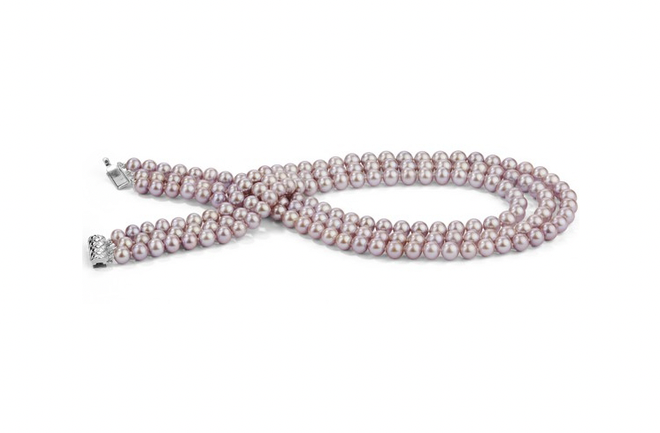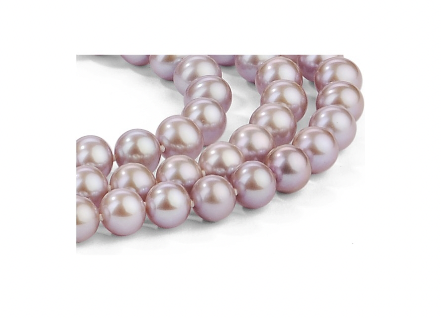 This triple strand of stunning lavender freshwater pearls makes a great gift for her. These pearls have extra fine AAA quality, with high luster and clean surface. The necklace is strung on silk and knotted between each pearl. Finished with a beautiful 14K gold clasp. Each piece comes with an elegant gift box and certified jewelry appraisal.