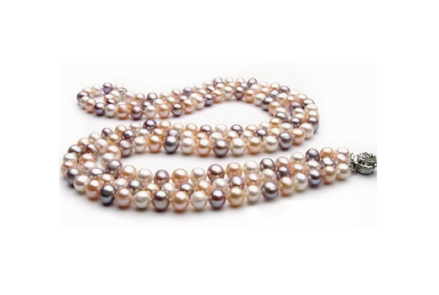 Triple Strand 6-7 mm Multicolor Pearl Necklace