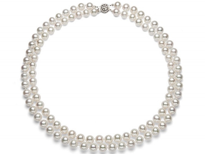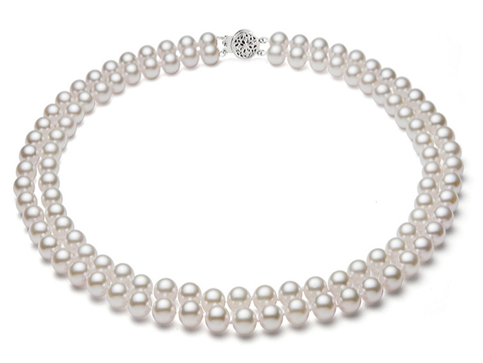Double Strand White Pearl Necklace 7-8 mm